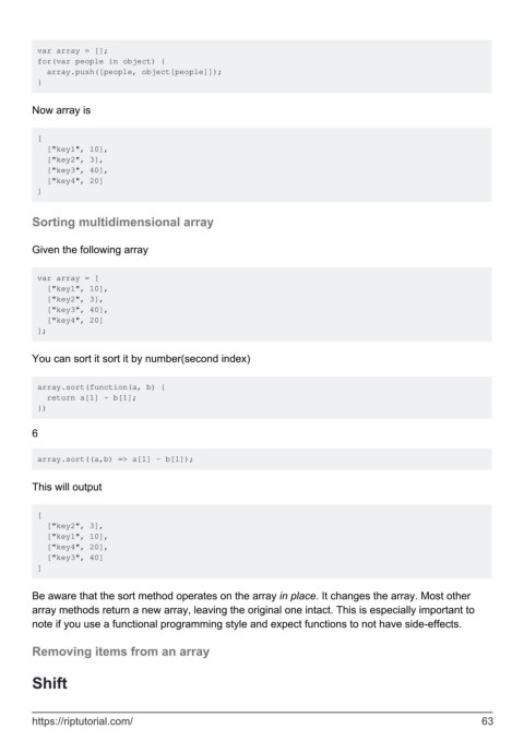 Be aware that the sort method operates on the array in place. It changes the array. Most other