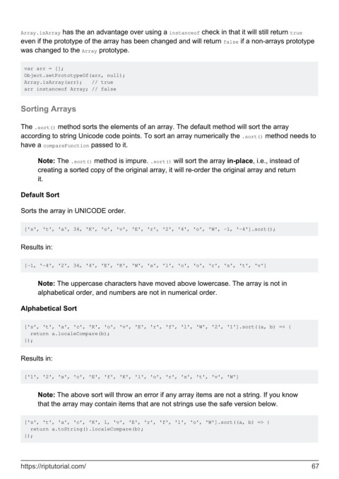 Note: The .sort() method is impure. .sort() will sort the array in-place, i.e., instead of