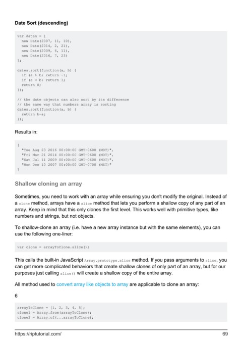 a clone method, arrays have a slice method that lets you perform a shallow copy of any part of an