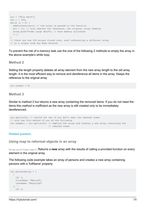 To prevent the risk of a memory leak use the one of the following 2 methods to empty the array in