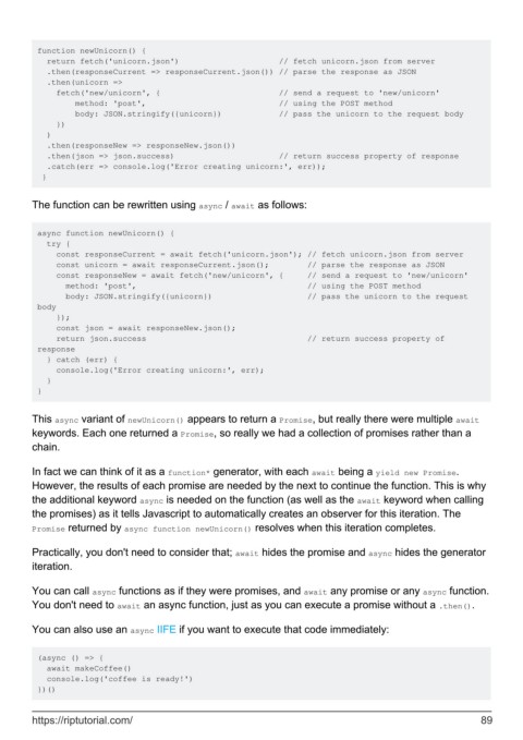 This async variant of newUnicorn() appears to return a Promise, but really there were multiple await