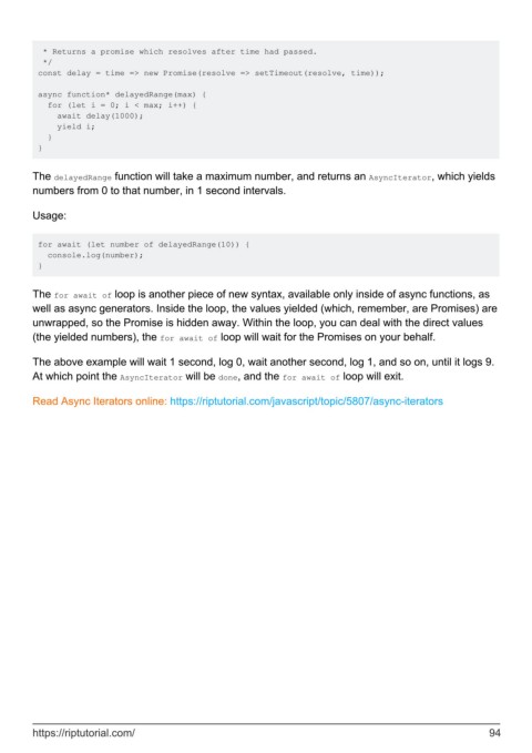 The delayedRange function will take a maximum number, and returns an AsyncIterator, which yields