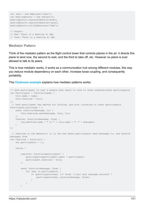 Think of the mediator pattern as the flight control tower that controls planes in the air: it directs this
