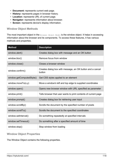 The most important object in the Browser Object Model is the window object. It helps in accessing