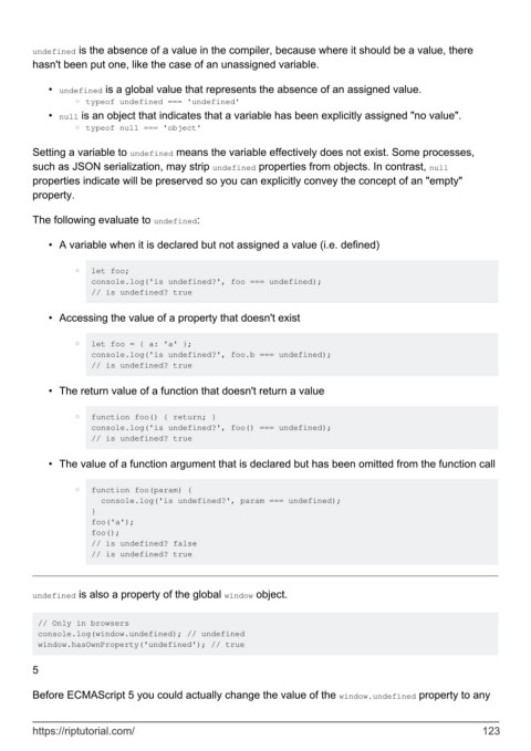 • undefined is a global value that represents the absence of an assigned value.