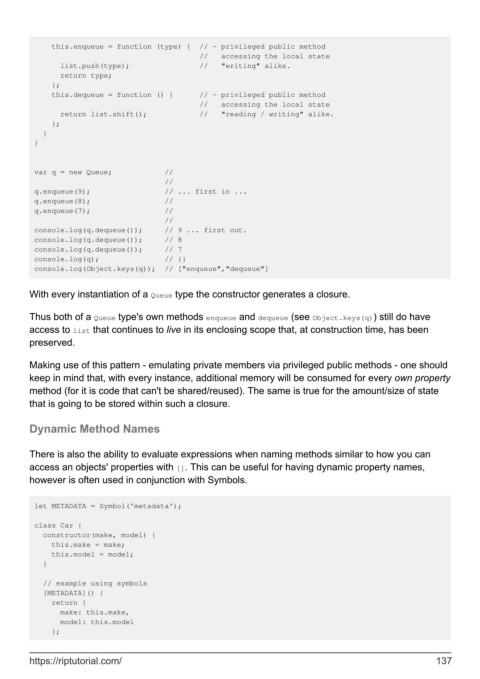 Thus both of a Queue type's own methods enqueue and dequeue (see Object.keys(q)) still do have