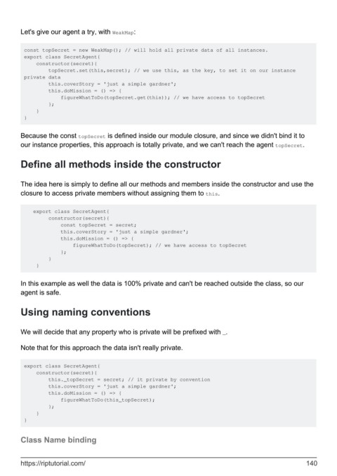 const topSecret = new WeakMap(); // will hold all private data of all instances.