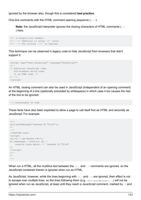 Note: the JavaScript interpreter ignores the closing characters of HTML comments (-->