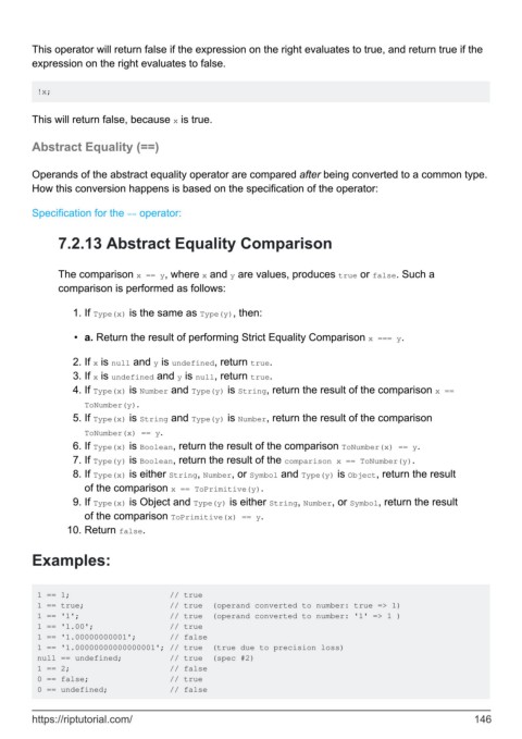 6. If Type(x) is Boolean, return the result of the comparison ToNumber(x) == y.