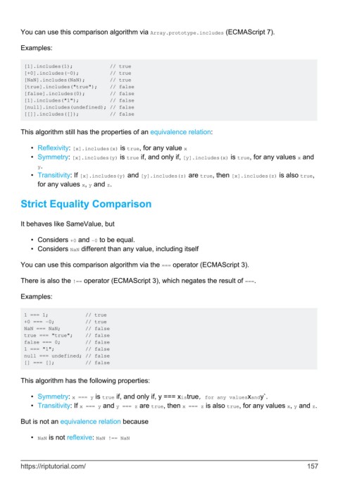 • Transitivity: If [x].includes(y) and [y].includes(z) are true, then [x].includes(z) is also true,