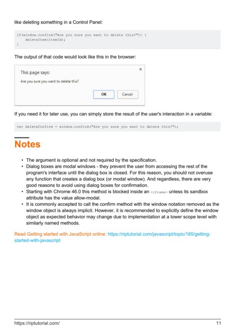 • It is commonly accepted to call the confirm method with the window notation removed as the
