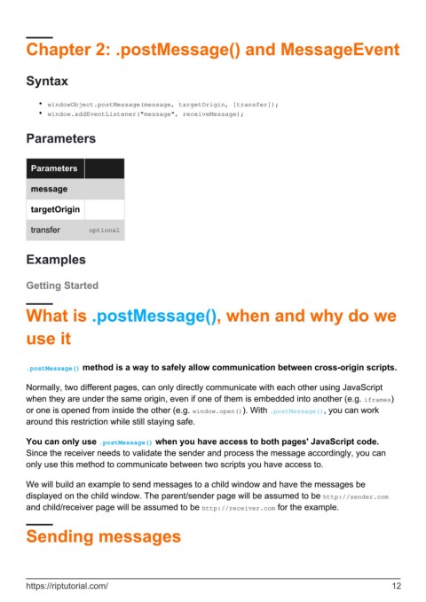 Chapter 2: .postMessage() and MessageEvent