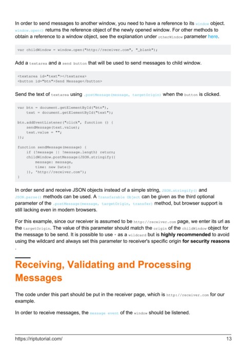 using the wildcard and always set this parameter to receiver's specific origin for security reasons