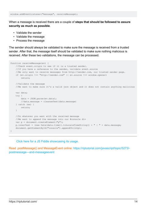 sender. After that, the message itself should be validated to make sure nothing malicious is