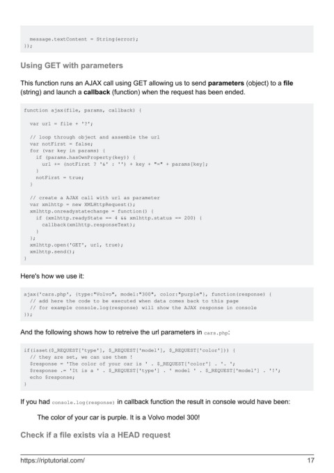 ajax('cars.php', {type:"Volvo", model:"300", color:"purple"}, function(response) {