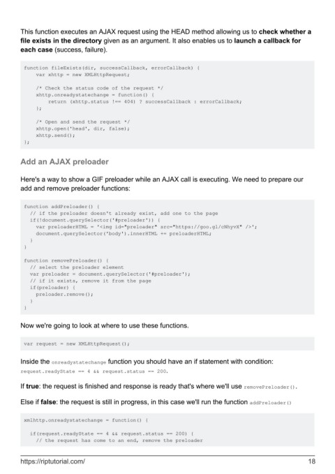 Else if false: the request is still in progress, in this case we'll run the function addPreloader()