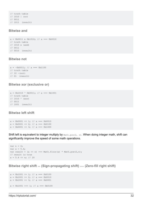 a = 0b1010 ^ 0b0011; // a === 0b1001