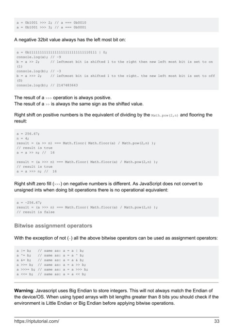 a = 0b1001 >>> 2; // a === 0b0010